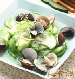 丝瓜1条,蛤蜊100公克,姜适量,盐适量,麻油适量