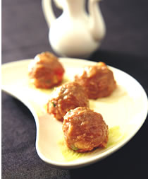 (5)把牛肉球放置盘中,淋上优格沙拉酱即可。