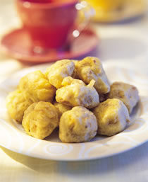 ①用手将面筋摘成直径2厘米的圆形颗粒;
