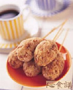鸡绞肉4两,猪绞肉4两,荸荠12个,葱末2大匙,鱼浆1/3杯,竹签6∼8支,盐2小匙,酱油1/3大匙,白胡椒粉2小匙,糖1/2大匙,红葱头末1大匙,香油适量,太白粉1/3杯