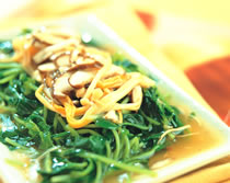 第一种:家常菜菜谱双菇烩豆苗做法