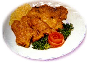 主料:猪扒300克。酒1茶匙,咖喱粉半茶匙,老抽半茶匙,盐半茶匙,糖半茶匙,椰汁半汤匙(或用淡奶取代,以椰汁较佳,)小鸡蛋半只,生粉1汤匙。