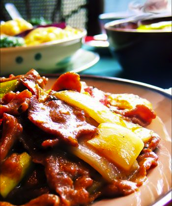 第一种:家常菜菜谱鸭梨油条划牛柳做法