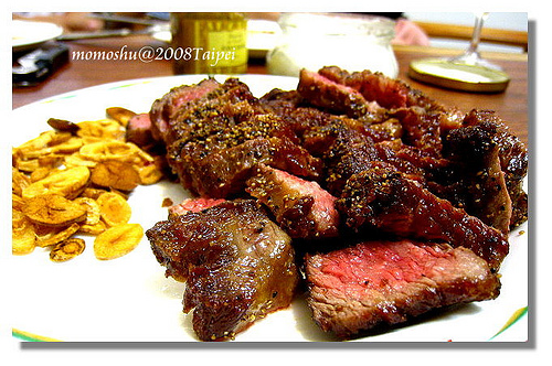 牛仔肉200公克,蒜头2粒,糖5公克,蚝油10公克,粗黑椒粒少许