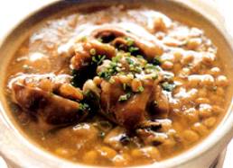 (2).将鸡腿,八珍放入砂锅内,注入料酒和适量的水,加锅盖,熬3-4小时。