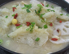 第五种:家常菜菜谱白果根炖猪小肚做法