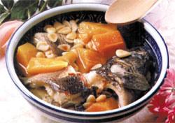 主料:生鱼1条,木瓜1小个,杏仁2钱,红枣4粒,姜2片,酒1大匙,盐1茶匙,开水5杯。