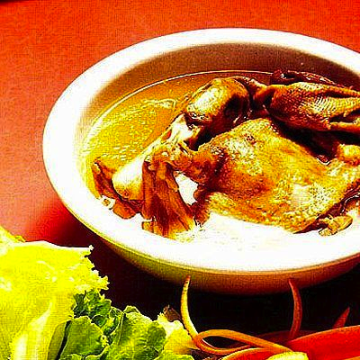 2.把鸭子装入砂锅,加入精盐、高汤,放入蒸锅隔水蒸50分钟后加入柠檬(要去掉内核),再蒸10分钟,加入味精,淋香油即成。