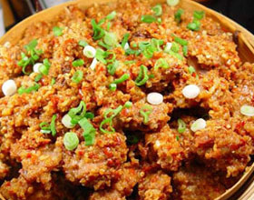 主料:猪排骨500克,炒米粉150克,红署50克,醪糟10克,豆瓣15克,花椒,甜面酱,精盐各5克。