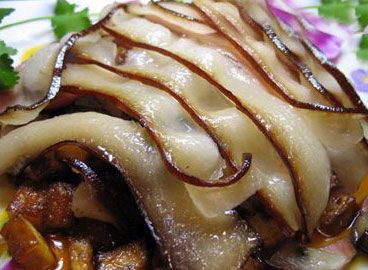 老腊肉即风干时间较长的腊肉,以四川青城山一带所产的尤为出名,干香化渣,不油腻。该菜以香气宜人的折耳根与之相烹,风味别致,香气扑鼻,鲜嫩脆爽,色泽红艳。