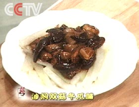 第一种:家常菜菜谱油焖双菇冬瓜脯做法