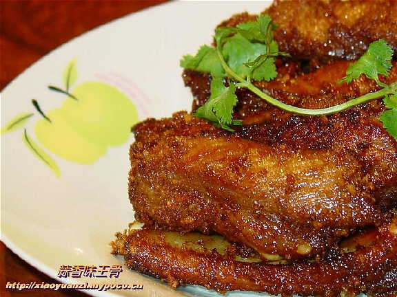 腩骨用蒜蓉1匙、味王粉半匙(没有的话加味精1小匙、生粉1匙代替)、老抽半匙、糖1匙入味2小时以上。