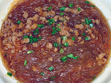 主料:猪肉150g,粉丝250g,酱油15g,葱花15g,姜末10g,红椒末10g,白糖5g,胡椒粉5g,味精10g,精盐5g,黄酒15g,淀粉50g,芝麻油10g,精制油50g.
