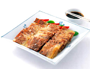 (5)解开包裹切成5cm大小的薄片,盛在碗里。
