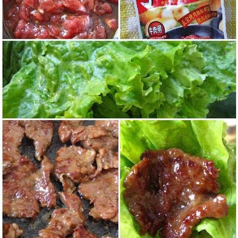 3、洗干净生菜包着吃就可以了,味道很棒的。