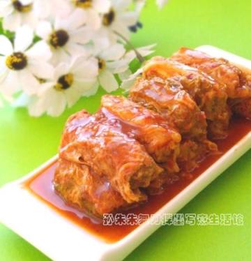 第一种:家常菜菜谱茄汁白菜肉卷做法