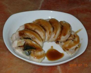 第一种:家常菜菜谱蚝油松花鸡肉卷做法