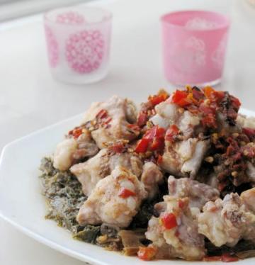 第一种:家常菜菜谱豉香辣排蒸梅干菜做法