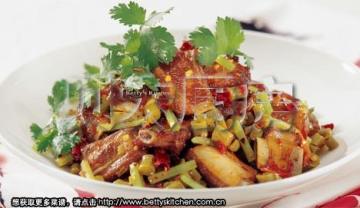 第一种:家常菜菜谱酸豇豆煸排骨做法