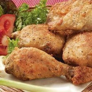 面粉250克,盐半汤匙,食盐1茶匙,黑胡椒1汤匙,芥末粉2汤匙,辣椒粉4茶匙,大蒜盐1汤匙,大鸡腿10个,油适量,做煎鸡腿用