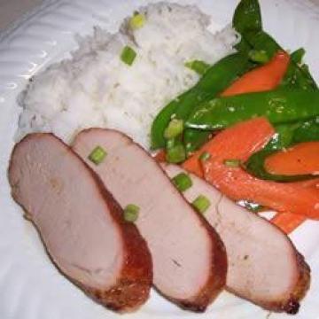 整条猪里脊肉1.25公斤,修剪整齐,淡酱油30毫升,海鲜酱30毫升,雪利酒15毫升,豆豉酱15毫升,切碎的老姜7.5克,黄砂糖7.5克,蒜头1瓣,麻油2毫升,五香粉少许