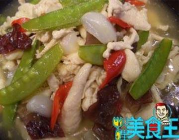第二种:家常菜菜谱材料:,鸡胸肉400克,辣椒2根,豌豆25克,百合25克,黑木耳50克,蛋1颗,太白粉适量做法