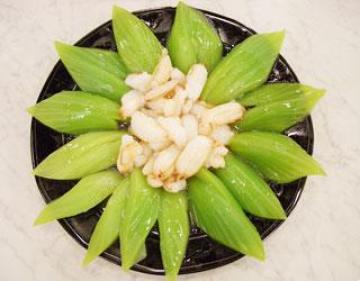 第二种:家常菜菜谱材料:蟳肉半两,芥菜心1斤半,高汤半杯,太白粉1小匙做法