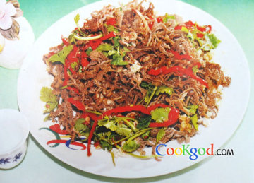 1。牛百叶切丝,入开水锅内烫过,捞出备用,加入少许料酒淹上