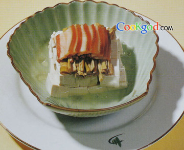石磨豆腐300克,咸肉100克,笋干50克调料盐、味精、高汤各少许
