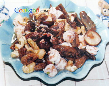 海参滑嫩,虾仁鲜嫩,鸡片香嫩,浓香鲜美。