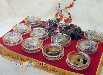 芥末汁螺片、葱烧兔肉、口蘑烧鹌鹑、京酱肉丝、香酥牛肉条