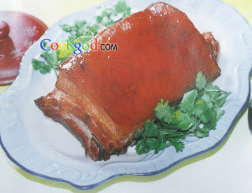 4、将肉方放入蒸锅内蒸熟取出,翻扣在盘中即成。