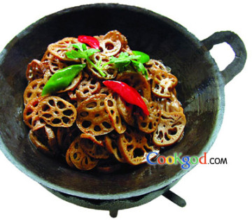 第一种:家常菜菜谱铁锅风干藕做法