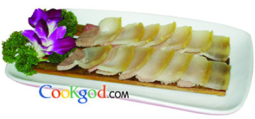 原料:黄山火腿0.5斤(净料),竹片4根,调料:白糖0.2克,味精0.1克