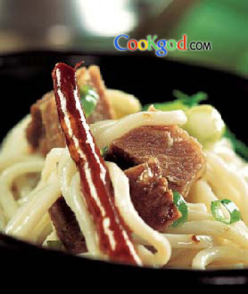 拉面150公克,青菜适量,牛肉150公克,牛肉清汤500㏄,盐1/2茶匙,绍兴酒数滴