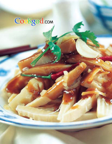 3、待冬笋肉呈牙白色时捞出沥净油。