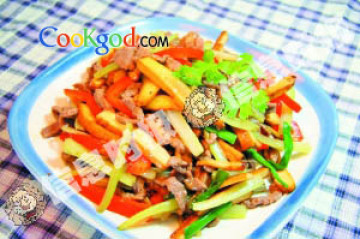 第三种:家常菜菜谱家常小炒香根牛柳丝做法