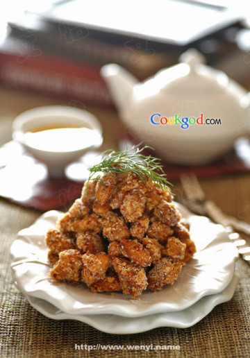 第一种:家常菜菜谱椰丝怪味脆杏仁做法