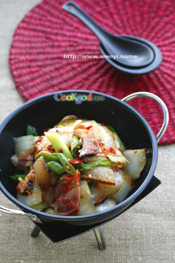 第三种:家常菜菜谱干锅腊肉白菜帮做法