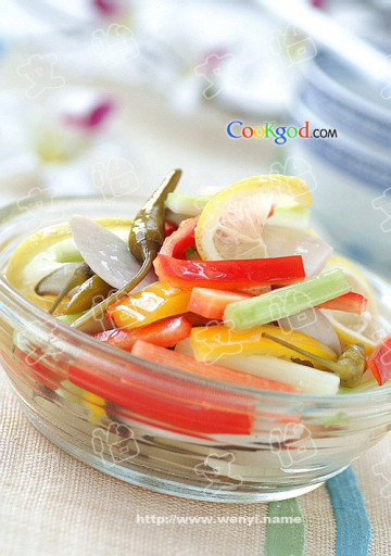 **根据这个做法,菜的原料可以随意组合搭配,但最好选择脆口蔬菜。当然,还可以用凤爪,猪耳朵等来做哈。