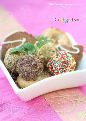 **外衣的原料,可以随意选择。杏仁碎,可可粉,花生碎等都可以。