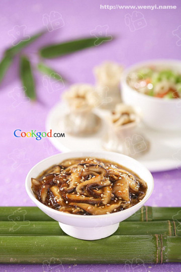 1.香菇洗净,泡软去蒂头,加入酱油1茶匙、糖1/2茶匙、沙拉油1茶匙、水3大匙,再入蒸笼蒸20分钟后取出备用。