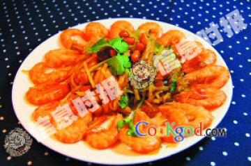 3.鲜虾去头去壳,汆水至熟,过冷河,控干水备用。