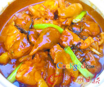 取海味和乳鸽红焖,味道甘醇。笔者曾在一餐厅品尝过此菜,其食味香浓而不腻口,皆因炮制此菜时加入了金不换和花雕酒,而带出淡淡的香气,十分醒胃。这里所说的海味,可选择淡菜和珧柱,这两种贝壳类经过干制之后,保留了包含蛋白质等养分,令菜肴口感丰富,味道适口。材料:乳鸽2只,珧柱(碎柱、水发后)20克、淡菜(水发后)50克、姜片15克、葱段10克、蚝油30毫升、五花腩150克、蜜糖少许,盐、鸡汤、金不换、花雕酒、胡椒粉各适量。