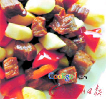 番茄去衣去籽,剁碎备用;迷迭香洗净切碎备用;牛肉洗净,切2厘米的粒状,用中火爆香,然后把爆制过程流出的肉汁煮干,取出;爆香蒜头、干葱和红椒片,牛肉回锅炒香至上色,然后加入适量水、烧汁、番茄碎和迷迭香,慢火煮45分钟至稔,最后以盐、糖调味便成。
