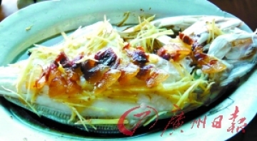 4、然后拿出,倒去水分,摆上姜丝,把花生油加热至刚起白烟,然后淋在姜丝上,最后加入蒸鱼豉油和少许鱼露便成。