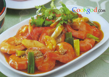 草虾10尾,姜6公克,大蒜1粒,青葱1支,辣豆瓣酱2大匙,酒酿1大匙,酸熘酱1/2杯,麻油1小匙