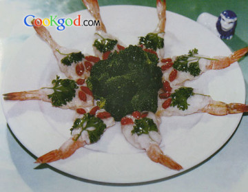 造型美观,虾肉鲜嫩,兰花清爽,营养滋补。