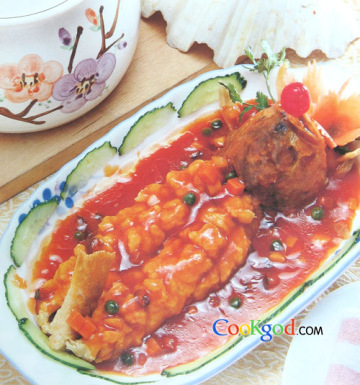 色泽鲜艳,鲜嫩酥香,酸甜适口。