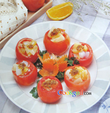 番茄8个,什锦杂果、白糖、桂花各适量。